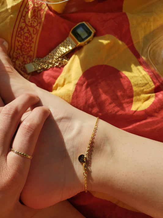 Our anklets are made with Stainless Steel chains, known for their durability and resistance to water tarnish.