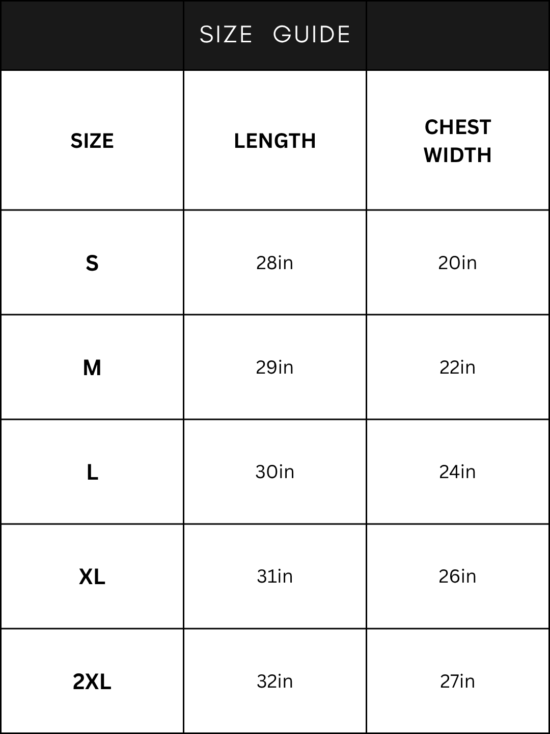 - Available in Sizes S-2XL (Refer to Size Guide*)